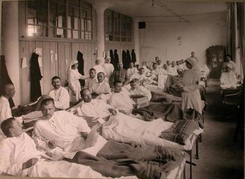 View Original:1914. 32. Медицинский персонал и раненые в палате лазарета Городского кредитного общества.jpg (2396x1748)