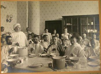 Keywords: 1915. 10. Раненые в столовой лазарета за обедом.jpg Лаза ет для аненых воинов 10 Все оссийского Земского союза в доме Пензенского Дво янства Го од Пенза 1915 10 Раненые в столовой лаза ета за обедом jpg 1915 https //fotki yandex ru/users/humus777/album/448275/ not specified PD-RusEmpire Medicine in Russia in 1915 Penza