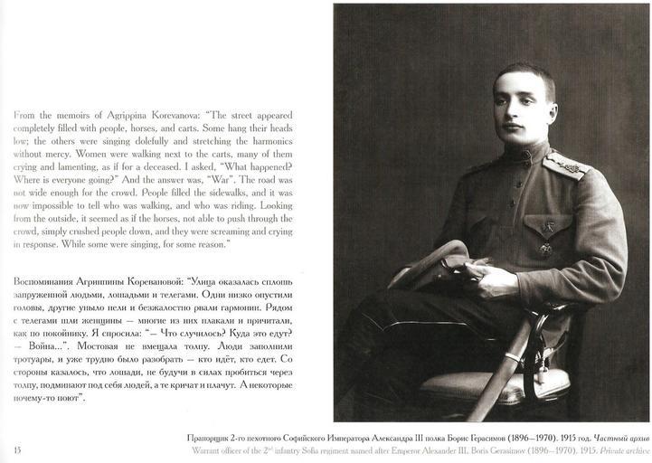 | Keywords: 1915 первая мировая война перваямироваявойна wwi world war i worldwari скан people Прапорщик 2-го пехотного Софийского Императора Александра III полка Борис Герасимов (1896-1970). 1915 год. Частный архив ......................... Скан из фотоальбома "Екатеринбург. История города в фотографии. Том II", составители А. В. Беркович, О. Ю. Сарафанов, 2015 г. .......................... ГЕРАСИМОВ БОРИС АПОЛЛИНАРЬЕВИЧ (1896, Миасс, Оренбургской губ. – 1970, Сталинград) – из семьи горного инженера, закончил Екатеринбургское реальное училище, в 1915 г. ускоренный курс Павловского военного училища. Участник 1-й мировой войны, начальник разведывательной команды 2-го пехотного Софийского полка, капитан. В 1917 г. вернулся в Екатеринбург, певец художественной студии. С августа 1918 г. доброволец - командир студенческой роты, помощник командира 25-го Екатеринбургского полка горных стрелков, с января 1919 г. командир этого полка, Георгиевский кавалер, полковник. С осени 1919 г. уполномоченный добровольческих формирований Томского района, участник Сибирского Ледяного похода. Попал в плен к партизанам. С 1920 г. певец оперных театров Иркутска, Екатеринбурга, Москвы. Окончил художественную студию В.И. Немировича-Данченко. В 1930-е гг. артист различных театров. С 1944 г. хормейстер Сталинградского театра оперетты до последних дней жизни. (Кручинин А.М. Падение красного Екатеринбурга. – Екатеринбург, 2005, с.162). Живой Урал - www.facebook.com/urallive/photos/pcb.1635196766737429/163... Прапорщик 2-го пехотного Софийского Императора Александра III полка Борис Герасимов (1896-1970). 1915 год. Частный архив ......................... Скан из фотоальбома "Екатеринбург. История города в фотографии. Том II", составители А. В. Беркович, О. Ю. Сарафанов, 2015 г. .......................... ГЕРАСИМОВ БОРИС АПОЛЛИНАРЬЕВИЧ (1896, Миасс, Оренбургской губ. – 1970, Сталинград) – из семьи горного инженера, закончил Екатеринбургское реальное училище, в 1915 г. ускоренный курс Павловского военного училища. Участник 1-й мировой войны, начальник разведывательной команды 2-го пехотного Софийского полка, капитан. В 1917 г. вернулся в Екатеринбург, певец художественной студии. С августа 1918 г. доброволец - командир студенческой роты, помощник командира 25-го Екатеринбургского полка горных стрелков, с января 1919 г. командир этого полка, Георгиевский кавалер, полковник. С осени 1919 г. уполномоченный добровольческих формирований Томского района, участник Сибирского Ледяного похода. Попал в плен к партизанам. С 1920 г. певец оперных театров Иркутска, Екатеринбурга, Москвы. Окончил художественную студию В.И. Немировича-Данченко. В 1930-е гг. артист различных театров. С 1944 г. хормейстер Сталинградского театра оперетты до последних дней жизни. (Кручинин А.М. Падение красного Екатеринбурга. – Екатеринбург, 2005, с.162). Живой Урал - www.facebook.com/urallive/photos/pcb.1635196766737429/163... |