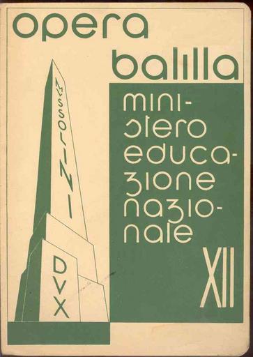 | Keywords: 1934-pagella-copertina.jpg it Opera Balilla - Ministero Educazione Nazionale XII - monolite Mussolini Dux copertina di pagella di III elementare Collezione Albertomos Ministero dell'Educazione Nazionale Opera Balilla 1934 nessuna XII si deve intendere dodicesimo anno dell'era fascista calcolata a partire dal 28 ottobre 1922 data della marcia su Roma Equivale al periodo dal 29 ottobre 1933 al 28 ottobre 1934 PD-old Monolite Mussolini Dux 1934 Historical images of Foro Italico Rome 1934 Opera Nazionale Balilla Documents related to Benito Mussolini 1934 Fascist calendar - Year XII |