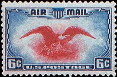 | Keywords: 1938 airmail stamp C23.jpg en May 14 1938 <br /> 5¢ Carmine Blue <br /> Eagle Shield <br /> C23 <br /> <br /> 349 946 500 U S Post Office Bureau of Engraving and Printing; Scanned by uploader 1938-05-14 Airmail stamps of the United States 1938 stamps PD-USGov |