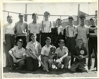 | Keywords: softball baseball playground unidentified location unidentifiedlocation unidentified person unidentifiedperson summer puppy dog people sport team sport The winning team of the 1944 Fort William Playgrounds softball championship. Twelve boys, the playground leader, and their puppy.   Accession 2015-07 #08   For more information about Thunder Bay's history, visit www.thunderbay.ca/archives The winning team of the 1944 Fort William Playgrounds softball championship. Twelve boys, the playground leader, and their puppy.   Accession 2015-07 #08   For more information about Thunder Bay's history, visit www.thunderbay.ca/archives |