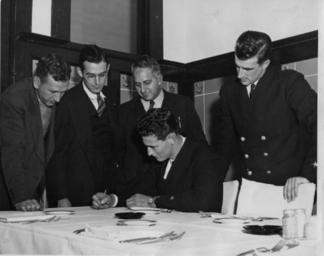 | Keywords: 1944 Ted Williams Kokomo.jpg A press photo of Ted Williams in his military uniform signing autographs around 1944 in Kokomo Indiana Others in photograph left to right include Ralph King Richard Dick Rainbolt glasses Haines Sleeth Ted Williams and Johnny Pesky Photograph owned by Jim Epler grandson of Richard Rainbolt Official U S Navy Photograph taken by U S N A S of Bunker Hill Indiana Origination http //edtech guhsd net/gallery/details php iid 194 ~ 1944 U S N A S PD-USGOV-MILITARY-NAVY PD-USGov-Military-Navy Transwiki details page en wikipedia 1944_Ted_Williams_Kokomo jpg 2007-03-04 22 51 Jepler 549×434×8 139920 bytes <nowiki>A press photo of Ted Williams in his military uniform signing autographs around 1944 in Kokomo Indiana Others in photograph left to right include Ralph King Richard Dick Rainbolt glasses Haines Sleeth Ted Williams and Johnny Pesky Photograph </nowiki> Kokomo Indiana Ted Williams Kokomo Indiana in the 1940s Johnny Pesky Personality rights |