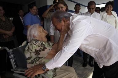 Keywords: Presidente Salvador Sánchez Ceren es saludad por una asistente al evento. Presidente Salvador Sánchez Ceren es saludad por una asistente al evento.