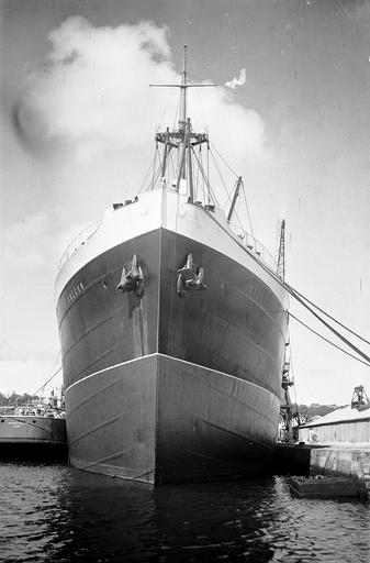 | Keywords: blackandwhite monochrome outdoor sea vehicle boat water black and white ORÉGON : 1950 – 1955 NB: L'histoire de l'Orégon à la C.G.T. est entièrement tirée des renseignements donnés par Mr Philippe Ramona dans son ''Encyclopédie des Messageries Maritimes'' Les autres renseignements proviennent comme habituellement des ouvrages du Commandant Lanfant et du Docteur Paul Bois. -------------------- 1929 - Construit par Bremer Vulcan à Vegesak (Quartier nord de Brème) Construit pour le Gouvernement Français au titre des réparations et confié à la Compagnie Générale Transatlantique en vue d'une utilisation sur la ligne du Pacifique Nord. 1929-1939 Assure pour le compte de la C.G.T. La ligne Le Havre –Panama – San Francisco 1940 Rapatrié au début des hostilités, il assure un voyage sur le Pacifique Sud au début de l'été. Sur le retour vers la France, au passage du canal de Panama il sera saisi par les Américains. Rendu à l'État-Français, il assurera le rapatriement de soldats français bloqués en Grande Bretagne. 1941 – Assure des rotations sur les Antilles Françaises pour le compte de Vichy. 1942 le 22 avril. Bloqué à Pointe à Pitre, puis à Fort de France. 1943 le 14 juillet. A l'occasion du ralliement des Antilles Françaises aux Force Françaises Libres, il est saisi. Utilisé en Méditerranée et sur l'Atlantique Nord par le pool Interalliés. 1945 le 9 avril : Rendu à la France. Placé sur la ligne Le Havre-New-York en attendant la remise en état de l'ILLE DE FRANCE 1948 – Placé sur la ligne Le Havre-Golfe du Mexique. 1950 le 27 juillet Affrété coque nue et prise en charge par la Compagnie des Messageries Maritimes, sans changement de nom. Transformation pour aménager des entreponts en vue du transport de troupes CARACTÉRISTIQUES : Paquebot mixte (très voisin du Sagittaire) Longueur : 150,50 mHT et 144mPP Largeur : 16,66 m (Paul Bois donne 18.6 m) Jauge brute : 7.706 tjb Jauge nette : 4.591 tn Port en lourd : 10.722 tonnes Déplacement : 16.960 tonnes Nombre de cales : 5 cales Mâts de charge : 10 de 5t – 8 de 3t - 2 de 8t – 1 bigue de 30t PROPULSION : 2 moteurs 2 temps double effet MAN 2 hélices. Puissance : 5600 cv au total Vitesse : Aux essais : 13,52 nœuds - En service : 12,5 nœuds. PERSONNEL : Officiers : 13 Équipage pont et machine : 114 hommes. - Personnel militaire : A l'aller vers Saïgon Un médecin chef commandant d'armes. Au retour en navire sanitaire : 1 Officier médecin psychiatre 1 Officier médecin chirurgien 1 Officier des équipages infirmier 5 Officiers mariniers infirmiers 20 Quartiers maîtres et matelots infirmiers. 12 Infirmières de la Marine. 1 AFAT. (Auxiliaire Féminine de l'Armée de Terre) Note: Durant la ''Guerre d'Indochine'' la Convention de Genève ne s'appliquera pas puisqu'il n'y a pas de guerre avec le Viêt-Nam. PASSAGERS : - A l'origine: 1ères Cl : 75 passagers. Sdes Cl: 130 passagers (chiffre donné par Paul Bois – Le Cdt Lanfant n'indiquant rien pour les Sdes cl. Entreponts : 66 hommes - Après transformation: En cabines : 184 personnes Entreponts : 66 hommes LIGNES : 1950 le 8 août: Inaugure son service sous le pavillon à coins rouges, sur Tahiti – Nlle Calédonie via Panama. 1950 - De grave avaries mécaniques vont l'immobiliser plusieurs mois. Il sera transformé en navire-hôpital pour rapatrier 800 malades mentaux ou blessés d'Indochine du corps expéditionnaire (560 lits) et emmener des troupes. 1951-1955 Affrété pour le transport des troupes vers l'Indochine à l'aller, et au retour comme navire hôpital psychiatrique. Il remplace le CHANTILLY condamné Assure cette fonction du 17 avril 1951 au 23 mai 1955, date à laquelle il est rendu à la CGT. ÉVÉNEMENTS : 1954 le 17 mai: En sortant de Marseille à 16h55 il heurte le pétrolier PÉCHEL-BROON. SUITE et FIN : 1955 – La Cie Gle Transatlantique le vend dès son retour à un armement de Hong-Kong. Renommé PACIFIC HARMONY il sera immatriculé sous pavillon Panaméen. 1955 le 27 juin : Dans la brume sur la côte des Indes, il va s'échouer vers Mormugao au dessus de Goa où il finira par se caser en deux. ORÉGON : 1950 – 1955 NB: L'histoire de l'Orégon à la C.G.T. est entièrement tirée des renseignements donnés par Mr Philippe Ramona dans son ''Encyclopédie des Messageries Maritimes'' Les autres renseignements proviennent comme habituellement des ouvrages du Commandant Lanfant et du Docteur Paul Bois. -------------------- 1929 - Construit par Bremer Vulcan à Vegesak (Quartier nord de Brème) Construit pour le Gouvernement Français au titre des réparations et confié à la Compagnie Générale Transatlantique en vue d'une utilisation sur la ligne du Pacifique Nord. 1929-1939 Assure pour le compte de la C.G.T. La ligne Le Havre –Panama – San Francisco 1940 Rapatrié au début des hostilités, il assure un voyage sur le Pacifique Sud au début de l'été. Sur le retour vers la France, au passage du canal de Panama il sera saisi par les Américains. Rendu à l'État-Français, il assurera le rapatriement de soldats français bloqués en Grande Bretagne. 1941 – Assure des rotations sur les Antilles Françaises pour le compte de Vichy. 1942 le 22 avril. Bloqué à Pointe à Pitre, puis à Fort de France. 1943 le 14 juillet. A l'occasion du ralliement des Antilles Françaises aux Force Françaises Libres, il est saisi. Utilisé en Méditerranée et sur l'Atlantique Nord par le pool Interalliés. 1945 le 9 avril : Rendu à la France. Placé sur la ligne Le Havre-New-York en attendant la remise en état de l'ILLE DE FRANCE 1948 – Placé sur la ligne Le Havre-Golfe du Mexique. 1950 le 27 juillet Affrété coque nue et prise en charge par la Compagnie des Messageries Maritimes, sans changement de nom. Transformation pour aménager des entreponts en vue du transport de troupes CARACTÉRISTIQUES : Paquebot mixte (très voisin du Sagittaire) Longueur : 150,50 mHT et 144mPP Largeur : 16,66 m (Paul Bois donne 18