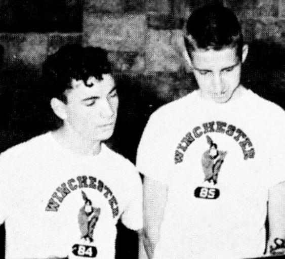 Keywords: sachem sachems logo winchester high school winchesterhighschool aberjona yearbook native american blackandwhite monochrome black and white Detail of Cross Country photo. Two boys wear uniforms that say "Winchester" and bear the likeness of a native with a feather wrapped in a blanket. Aberjona yearbook 1955, Native images from Winchester, MA Detail of Cross Country photo. Two boys wear uniforms that say "Winchester" and bear the likeness of a native with a feather wrapped in a blanket. Aberjona yearbook 1955, Native images from Winchester, MA |