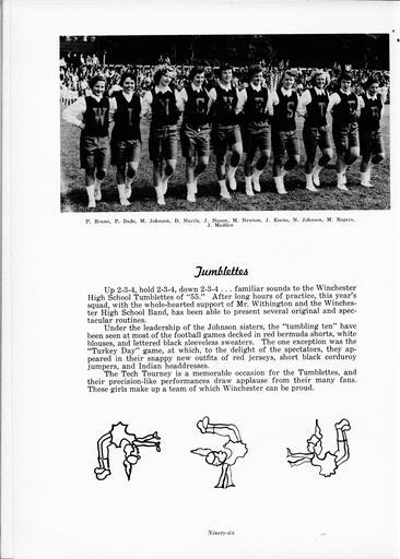 Keywords: sachem sachems logo winchester high school aberjona yearbook sachemsachemslogowinchesterhighschoolaberjonayearbook native american nativeamerican blackandwhite monochrome text photo border black and white "Tumblettes ...[At the ]Turkey Day game, to the delight of the spectators, they appeared in their new snappy new outfits of red jerseys, short black corduroy jumpers, and Indian headdresses." Three sketches of native girl with a headband, feather, light hair, and a dress doing tumbling moves. Aberjona yearbook 1955, Native images from Winchester, MA "Tumblettes ...[At the ]Turkey Day game, to the delight of the spectators, they appeared in their new snappy new outfits of red jerseys, short black corduroy jumpers, and Indian headdresses." Three sketches of native girl with a headband, feather, light hair, and a dress doing tumbling moves. Aberjona yearbook 1955, Native images from Winchester, MA |