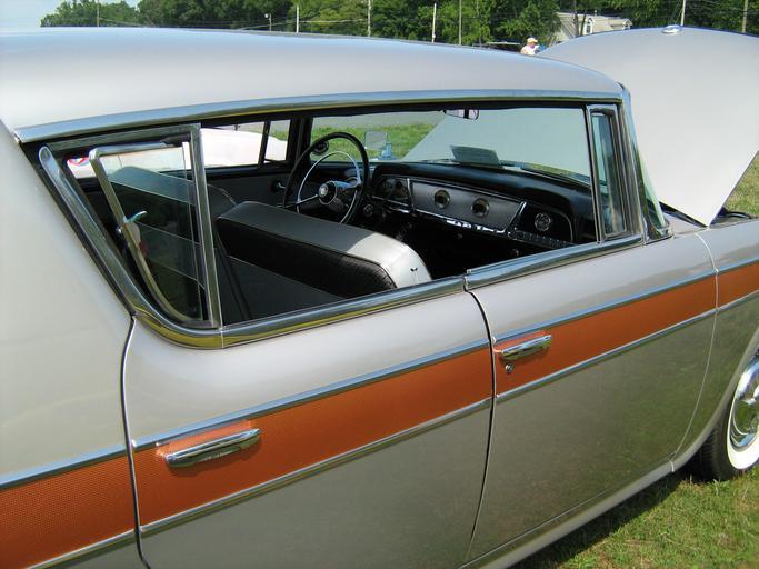 | Keywords: 1957 Rambler Rebel hardtop nbr-Cecil'10.jpg  en 1957 Rambler Rebel detail of the four-door hardtop pillarless body design This mid-sized muscle car built by American Motors Corporation AMC A limited edition four-door hardtop no center pillar model designed to showcase AMC's new high-performance 327 cu in 5 4 L V8 engine Picture taken at the Cecil County Dragstrip in Maryland own 2010-07-18 CZmarlin ” Christopher Ziemnowicz releases all rights but a photo credit would be appreciated if this image is used anywhere other than Wikipedia Please leave a note at Wikipedia http //en wikipedia org/w/index php title User_talk CZmarlin action edit section new here Thank you en I the copyright holder of this work hereby release it into the public domain This applies worldwide thumb left Driver's view of the dashboard thumb center Interior view of cockpit and dashboard thumb left R Emblem on the gas cap rear left fender and the gold body side trim thumb center Detail of the Rebel emblem on front fender and the gold body side trim thumb left The Rebel emblem on the trunk lid and detail of the tail lamp on this Rambler Rebel thumb center The AMC 327 four-barrel V8 engine in this Rambler Rebel thumb left Head on view thumb center Passenger area in the Rambler Rebel thumb left Rambler Rebel front right shot thumb center With open hood thumb left Detail of the full wheel cover with spinner and correct vintage whitewall tires on this Rambler Rambler Rebel |