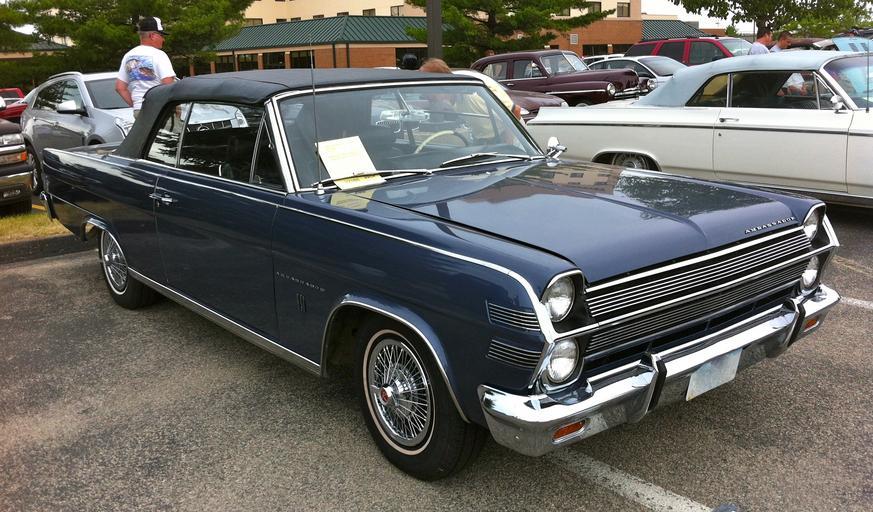 Keywords: 1966 AMC Ambassador 990 4-sp convertible AACA Iowa o.jpg 42 028833333333 -91 651833333333 en 1966 AMC Ambassador 990 convertible finished in blue - right front view A full-sized automobile built by American Motors Corporation AMC in Kenosha Wisconsin This is an all original one-owner car that was special ordered by them Among the features on this car are its 327 cu in 5 4 L 4--barrel carb V8 engine with a 4-speed manual transmission center console mounted shifter with black bucket seats as well as an AM/FM radio and an aftermarket 8-track stereo player Picture taken at the 2012 Antique Automobile Club of America AACA Central Spring meet in Cedar Rapids Iowa USA 2012-06-23 14 31 37 own CZmarlin ” Christopher Ziemnowicz releases all rights but a photo credit would be appreciated if this image is used anywhere other than Wikipedia Please leave a note at Wikipedia http //en wikipedia org/w/index php title User_talk CZmarlin action edit section new here Thank you thumb left Left side front view thumb center Right rear view thumb left Rear view thumb center Right side view thumb left Front view thumb center Interior view thumb left Driver's compartment thumb center Interior view thumb left Left side of engine thumb center Right side of engine thumb left Another front view thumb center Headlamp detail thumb left Model name and wheel detail thumb center Another right front view thumb left upright Tail lamp detail cc-zero AMC Ambassador Uploaded with UploadWizard |