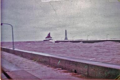 | Keywords: 1967 Duluth breakwall DVIDS1091037.jpg en Duluth Minnesota April 30 1967 is a day many Minnesota residents refer to as 'Black Sunday ' A storm passed through the area causing waves as high as 20 feet on Lake Superior here with winds gusting up to 45 mph across the 36-degree water The Coast Guard rescue team of Culbertson Callahan and Prei were dispatched during the storm to search for three brothers who had been reported missing Eric Arthur and Nathan Halverson had last been seen on the North Pier break wall of the Duluth Harbor entry The Coast Guardsmen tied themselves together spaced 25 feet apart and struggled to the end of the pier but were unable to reach the boys before they were swept over the side As they traversed back across the pier a large wave crashed into the team and swept Culbertson over the side taking his life 1967 U S Coast Guard Photo for release by Fireman Ronald Prei / via PS1 Kevin Rofidal MSU Duluth 2009-04-23 https //www dvidshub net/image/1091037 1091037 2013-12-12 01 12 DULUTH MN US PD-USGov Lake Superior Images from DoD uploaded by Fæ |