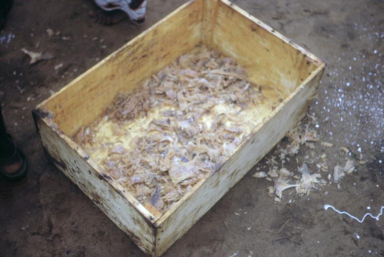 Keywords: 1968 4 Nigeria CDC.png en This 1968 photograph showed a nearly empty box of dried fish that was being distributed to nutritionally deprived refugees of the Nigerian-Biafran civil war During the Nigerian-Biafran civil war the CDC assisted in delivering food to the refugees However due to a lack of international help health officials could not get enough food to everyone so they relied on a high protein distribution effort i e dried fish dried milk etc that was supplemented with locally-grown carbohydrates such as yams and cassava manioc melons Dr Lyle Conrad and Dr William H Foege established a standard for height and weight for the Nigerian children which before that time did not exist 1968 CDC http //phil cdc gov/phil/details asp CDC/ Dr Lyle Conrad other versions PD-USGov Uploaded with UploadWizard Nigeria in the 1960s Famines in Africa Images from the CDC Public Health Image Library |