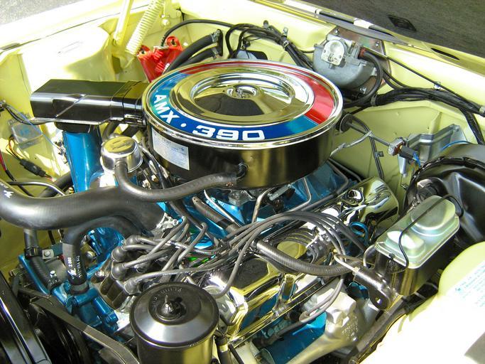 | Keywords: 1968 AMC AMX yellow 390 auto md-el.jpg en The 390 AMX engine from left side in a 1968 AMX a two-seat GT sport coupe made by American Motors Corporation AMC Finished in yellow with black stripes and all black interior This car has the 390 Go Package that included the 390 cu in 6 4 L 315 hp 235 kW V8 engine racing stripes power front disk brakes Twin-Grip rear differential Magnum 500 chrome wheels and many other high-performance components This car has the optional automatic transmission Rally Pac instruments and dual side exhaust pipes own 2010-09-25 CZmarlin ” Christopher Ziemnowicz releases all rights but a photo credit would be appreciated if this image is used anywhere other than Wikipedia Please leave a note at Wikipedia http //en wikipedia org/w/index php title User_talk CZmarlin action edit section new here Thank you thumb left Right side profile view thumb center Rear view thumb left Optional dual side pipes thumb center Rear side view thumb left Detail of the AMX badge thumb center Engine emissions sticker thumb left 390 emblem on rear side panel thumb center The 390 AMX engine from right side thumb left Interior driver's side thumb center Interior dashboard and center console thumb left Go package over the top stripes thumb upright center Corporate logo mounted below rear window AMC AMX AMC 390 V8 engine |