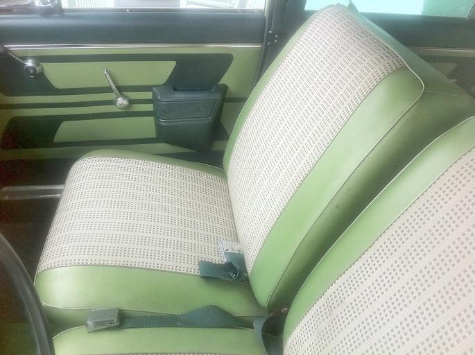 | Keywords: 1968 Rambler American 440 4-door sedan green VA-ia.jpg en The standard individually adjustable and reclining front seats in a 1968 Rambler American by American Motors Corporation - AMC 440 series 4-door sedan finished in Laurel Green Iridescent paint code - P46A and matching green interior Photographed near Madison Virginia classic car dealer on US-29 2012-12-09 12 58 11 own CZmarlin ” Christopher Ziemnowicz releases all rights but a photo credit would be appreciated if this image is used anywhere other than Wikipedia Please leave a note at Wikipedia http //en wikipedia org/w/index php title User_talk CZmarlin action edit section new here Thank you thumb left Front left side thumb center Front right side thumb left Detail of vent window and outside rear view mirror thumb center Detail of emblems on front fender and full wheel cover thumb left Head on view thumb center Steering wheel and dashboard thumb left Interior view of driver's area thumb center Detail of rear window thumb left Detail of automatic transmission column shifter thumb upright center Rear seats thumb left Detail of model name and C pillar 38 393833333333 -78 238666666667 cc-zero Rambler American AMC interiors Uploaded with UploadWizard Automobile seats |