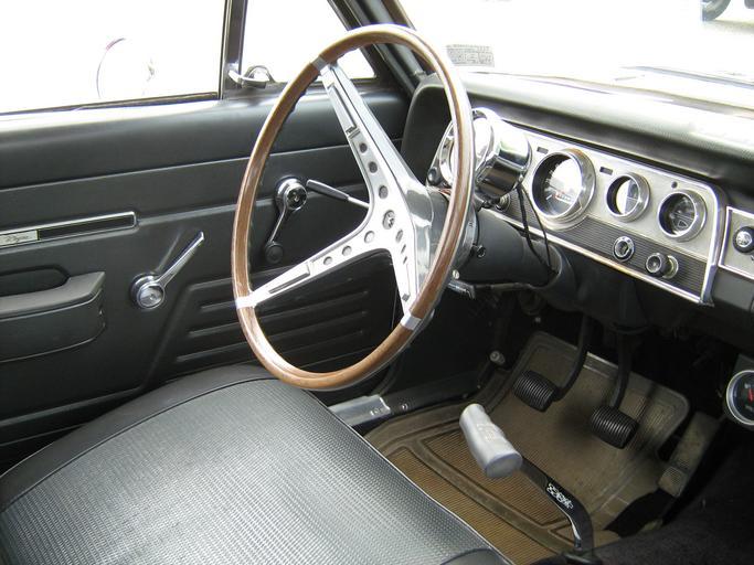 | Keywords: 1969 AMC SC-Rambler md-D2.jpg en Driver's cockpit and dashboard with the factory standard Sun brand tachometer strapped to the steering column in the 1969 SC/Rambler - a compact two-door hardtop muscle car produced by American Motors Corporation AMC in collaboration with Hurst Performance This two-door hardtop body style no B pillar was a special low-priced factory-ready Stock Car model designed to to showcase AMC in performance and drag racing Each Hurst SC/Rambler came equipped with AMC's 315 hp 235 kW; 319 PS 390 cu in 6 4 L AMC V8 engine from the AMX and only with a four-speed manual transmission with Hurst shifter as well as a standard 3 54 1 Twin-Grip limited slip differential This car has the A paint scheme Photograph taken at Potomac Ramblers Club's 2011 all AMC Drag Race Day held at the Capitol Raceway an NHRA sanctioned 1/4 mile asphalt and concrete drag strip located in Crofton Maryland own 2011-06-11 CZmarlin ” Christopher Ziemnowicz releases all rights but a photo credit would be appreciated if this image is used anywhere other than Wikipedia Please leave a note at Wikipedia http //en wikipedia org/w/index php title User_talk CZmarlin action edit section new here Thank you thumb left Front right side view thumb center Detail of the SC/Rambler's standard red/white/blue headrests on individually adjustable reclining front seats thumb left Detail of standard rear view mirror thumb center Returning from a run down the drag strip thumb upright left The SC/Rambler's functional hood scoop AMC SC/Rambler Automobile dashboards Automobile cockpits Tachometers |