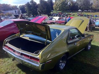 | Keywords: 1970 AMC AMX golden lime at 2014 Rockville Show - 2.jpg en Rear right view of a 1970 AMX by American Motors Corporation AMC a two-seat Grand Touring muscle-car coupe finished in golden lime with a 390 Go Pac 6 4 L V8 with numerous other performance and handling enhancements Picture taken at the 2014 Rockville Antique and Classic Car Show held at the Rockville Civic Center Park in Maryland 2014-10-18 12 51 43 own CZmarlin ” Christopher Ziemnowicz releases all rights but a photo credit would be appreciated if this image is used anywhere other than Wikipedia Please leave a note at Wikipedia http //en wikipedia org/w/index php title User_talk CZmarlin action edit section new here Thank you thumb left upright This car's window sticker thumb center Interior of this sports car 39 086333333333 -77 127 heading 261 1151515151515 cc-zero AMC AMX Golden coupes Rockville Antique and Classic Car Show Uploaded with UploadWizard Automobiles with open trunks |