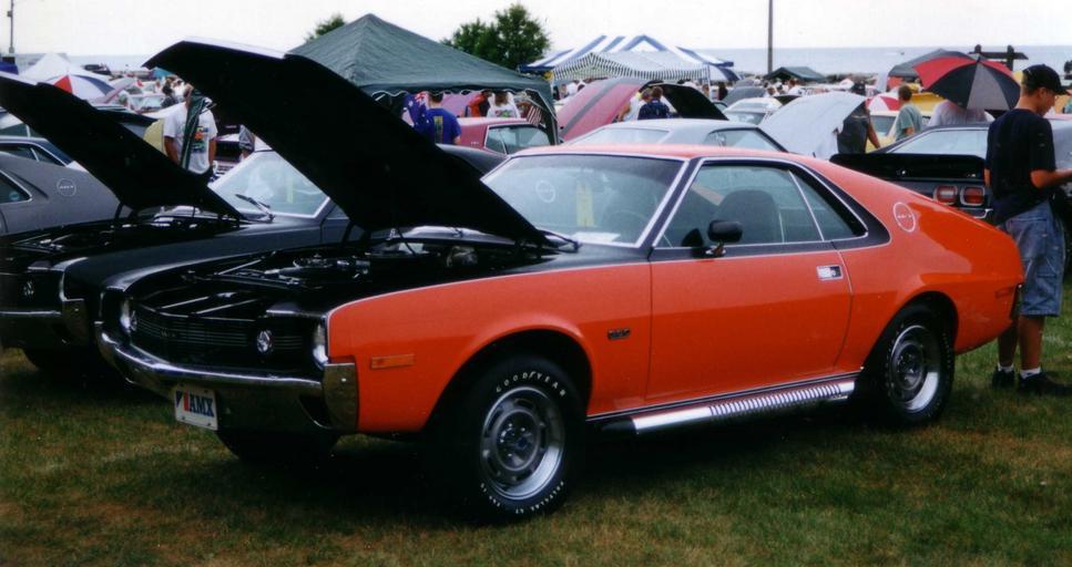 Keywords: 1970 AMX BBO-exteriorF.JPG 1970 AMC American Motors Corporation AMX sports coupe finished in Big Bad Orange BBO with the black shadow mask option Factory 390 6 4 L Go Package This car also has the optional 15-inch Machine wheels and side-pipe exhaust system own CZmarlin ” Christopher Ziemnowicz releases all rights but a photo credit would be nice if this image is used anywhere other than Wikipedia Uploaded on 2008-09-06 Picture of this car from the rear <br> Interior view of this car AMC AMX 1970 AMC automobiles Orange coupes |