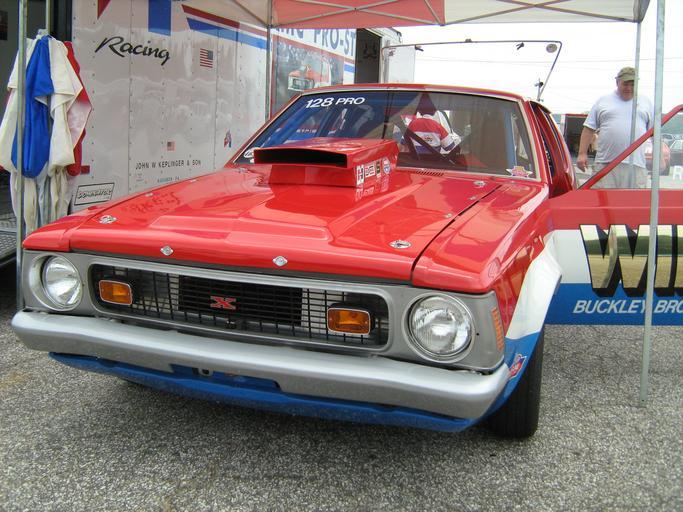 | Keywords: 1972 AMC Gremlin veteran dragster 99 WIBG mdD-fr.jpg en Front view of the customized 1972 AMC Gremlin a historic professional dragster that was driven by Rich LaMont and sponsored by radio station 99 WIBG broadcasting in Philadelphia PA This car RUNS the quarter-mile at around 8 75 seconds achieving over 150 mph 240 kph This Pro-Stock racer is restored period correct and raced regularly Photograph taken at Potomac Ramblers automobile club's 2011 All AMC Drag Race Day held at the Capitol Raceway a NHRA sanctioned 1/4 mile asphalt and concrete drag strip located in Crofton Maryland own 2011-06-11 CZmarlin ” Christopher Ziemnowicz releases all rights but a photo credit would be appreciated if this image is used anywhere other than Wikipedia Please leave a note at Wikipedia http //en wikipedia org/w/index php title User_talk CZmarlin action edit section new here Thank you en I the copyright holder of this work hereby release it into the public domain This applies worldwide thumb left Side rear view with open driver's door thumb center Race driver's cockpit and controls thumb left The Pro-Stock Gremlin and several other AMCs waiting for their turn thumb center The Gremlin doing a burnout thumb left At the starting line for the race the 99 WIBG Gremlin in lane 1 and and a two-seat AMX in lane 2 thumb center Returning from a run down the drag strip thumb left Approaching the timing booth thumb center Rear right side view thumb left The 1972 AMC Pro Stock Gremlin's trailer AMC Gremlin AMC Custom cars AMC dragsters Front views of AMC automobiles |