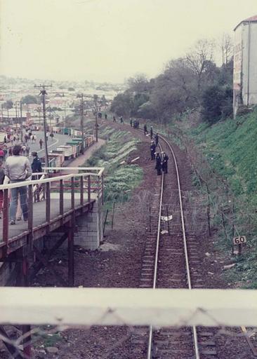 | Keywords: 1981-springbok-tour-auckland-kingsland-station.jpg en View from Kingsland Station looking west before the 1981 All Blacks vs Springboks rugby match own John Mellor 1981 The Springbok Tour Kingsland Train Station Police officers of New Zealand Barriers in New Zealand Barbed wire Demonstrations and protests in New Zealand in 1981 |