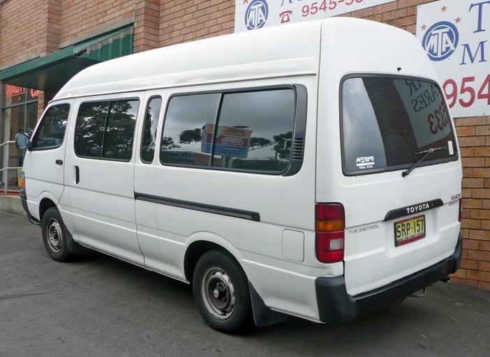 Keywords: 1989-1994 Toyota Hiace (RZH125R) Commuter van 02.jpg 1989 “1994 Toyota Hiace RZH125R Commuter van photographed in Kirrawee New South Wales Australia 2010-04-03 Own OSX Released into the public domain OSX Toyota HiAce H100 White vans Photographs by OSX |