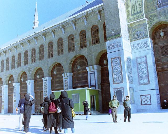 | Keywords: 1993 Damascus. Female tourists in Umayyad Mosque. Spielvogel.jpg Umayyad Mosque in Damascus Female tourists have to wear black burqa-like clothes when entering mosques in Syria which they receive at an entrance reserved for women Even if this garment cloaked the entire body they are easily identified as western women by their behavior and posture 1993 own Spielvogel here All images can be used free of charge ici hier Alle Bilder können kostenfrei verwendet werden ---- left 100px I have published this image as author Spielvogel under the http //creativecommons org/publicdomain/zero/1 0/deed en CC0 1 0 in Wikipedia This means you can copy modify distribute and perform the work even for commercial purposes all without asking permission Anyhow it would be decent if as author Wikipedia or wikimedia commons is mentioned ---- left 100px 我以Spielvogel为名 并遵循 http //creativecommons org/publicdomain/zero/1 0/deed zh CC0 1 0 用 协议 维基百科中发布了这 图像 这意味 ---- left border 100px J'ai créé cette œuvre et la publiée sous la licence http //creativecommons org/publicdomain/zero/1 0/deed fr CC0-1 0 universal Vous pouvez copier modifier distribuer et représenter l œuvre même à des fins commerciales sans avoir besoin de demander l autorisation Néanmoins c'était convenable si comme auteur la wikipédia ou wikimedia commons est appelée ---- left 100px Das Foto habe ich als Urheber unter der http //creativecommons org/publicdomain/zero/1 0/deed de CC0-1 0 veröffentlicht Damit ist das Werk in die Gemeinfreiheit - auch genannt Public Domain - entlassen indem ich weltweit auf alle urheberrechtlichen und verwandten Schutzrechte verzichtet habe soweit das gesetzlich möglich ist Sie dürfen das Werk kopieren verändern verbreiten und aufführen sogar zu kommerziellen Zwecken ohne um weitere Erlaubnis bitten zu müssen Gleichwohl wäre es anständig wenn als Urheber Wikipedia oder Wikimedia Commons genannt würde cc-zero Uploaded with UploadWizard Umayyad Mosque Men of Syria Men facing left and looking left Men looking left Walking men Tourists in Syria Women looking up Standing women Islamic female dress Black clothing female 1993 in Syria 1993 in Damascus 1993 photographs Images by Spielvogel |