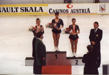 Keywords: 1993becs01.jpg en 1993 Karl Schäfer Memorial Ladies Podium From left Olga Markova 3rd Krisztina Czakó 1st Tanja Szewczenko 2nd own work Czakrisz 1993-09 Vienna Cc-zero Figure skating ladies singles medal ceremonies Olga Markova figure skater Krisztina Czakó Tanja Szewczenko 1993 in figure skating Karl Schäfer Memorial |