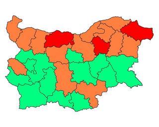 Keywords: 1995 - 2001 distribution.JPG en Rabies distribution in Bulgaria 1988 - 2001 bg Разп еделение на случаите на бяс п и диви животни в Бълга ия в пе иода 1988 - 2001 по области own Izvora 2009-10-23 Rabies maps