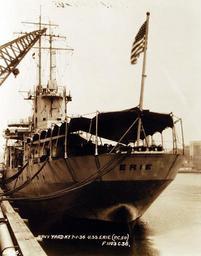 Keywords: 19-LC-14-44: USS Erie (PG 50), stern view during her commissioning ceremony at New York (Brooklyn) Navy Yard, New York, July 1, 1936. Noted for the transportation of refugees during the Spanish Civil War, she was later sunk by a German U-boat off Trinidad in February 1942. (6/16/2015). 19-LC-14-44: USS Erie (PG 50), stern view during her commissioning ceremony at New York (Brooklyn) Navy Yard, New York, July 1, 1936. Noted for the transportation of refugees during the Spanish Civil War, she was later sunk by a German U-boat off Trinidad in February 1942. (6/16/2015). |
