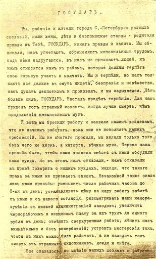 Keywords: Петиция-1.jpg ru Пе вая ст аница Петиции абочих и жителей Санкт-Пете бу га 9 янва я 1905 года Д С Све чков а за е еволюции Л Госиздат 1926 г Гео гий Аполлонович Гапон 1870-1906 1905-01-08 Bloody Sunday 1905 PD-old