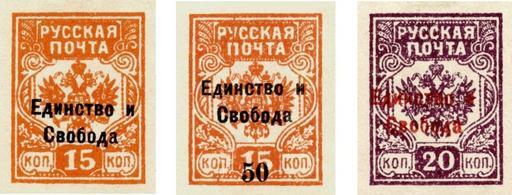 | Keywords: ЗДА-надп-1.jpg  en Overprint Unity and freedom on stamps of 4th issue of WDA of 1919 ru  адпечатка Единство и свобода на ма ках 4-го выпуска ЗДА 1919 г 1919 stamp ; 2010-11-06 10 15 07 Myaskovsky Collection author PD-old Cinderella stamps of Russia Stamps printed in Russian Empire area during Civil War Uploaded with UploadWizard Russian Civil War issues |