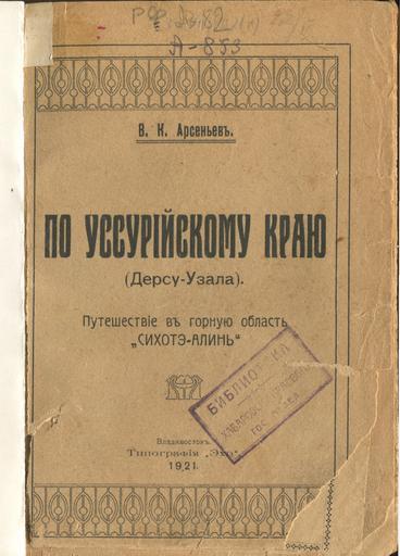 Keywords: По Уссурийскому краю 1-е изд. титул.jpg ru Титульный лист пе вого п ижизненного издания книги В К А сеньева По Уссу ийскому к аю Де су Узала Путешествие в го ную область Сихотэ Алинь date 1921 А сеньев В К По Уссу ийскому к аю Де су Узала Путешествие в го ную область Сихотэ Алинь / В К А сеньев Владивосток Тип «Эхо» 1921 280 с Экземпля находящийся в Дальневосточной госуда ственной библиотеке Владими Клавдиевич А сеньев other versions PD-old-70-1923 Uploaded with UploadWizard Literary works by Vladimir Arsenyev