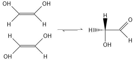 | Keywords: 1,2-ethenodiol-ethanoic hydroxyethanal.svg tautomery reaction own Krishnavedala 2014-08-01 validSVG LaTeX source code <syntaxhighlight lang latex > \documentclass12pt border 3pt standalone \usepackageT1 fontenc \usepackageutf8 inputenc \usepackage chemfig chemmacros \usepackage lmodern \usetikzlibrary decorations pathmorphing \chemsetupchemformula font-shape sf format \sffamily \renewcommand \printatom1 \ensuremath \mathsf 1 \setatomsep 2 5em \setdoublesep 6ex \setarrowdefault 1 25 \setbondstyle thick \begin document \schemestart \subscheme \chemfig OH-7 -5H -7H -1OH \arrow 0 -90 25 \chemfig H-7 -5OH -7H -1OH \arrow <->> \chemfig H> <2H -6OH - 1O -7H \schemestop \end document </syntaxhighlight> cob Tautomerism Glycolaldehyde Cc-zero |