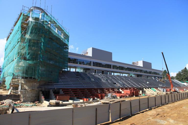 Keywords: СЛБК 1.JPG en Building biathlon stadium the stands ru Здание биатлонного стадиона т ибуны из личного фотоа хива Александ Вайне 2011-08-16 Cc-zero Laura Biathlon Ski Complex 2014 Winter Olympics preparation