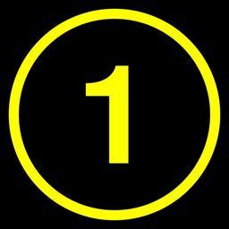 Keywords: 1 black yellow-round.svg Wegweiser von lokalen Rundwegen own 2014-07-26 max60watt Other fields T + Yellow on black signs SVG signs 01 Diagrams of hiking and footpath signs in Hesse 1 number