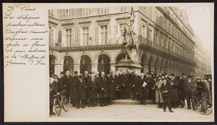Keywords: photo border architecture A Paris, les délégués parlementaires anglais vienent déposer une gerbe de fleurs à la statue de Jeanne d'Arc. A Paris, les délégués parlementaires anglais vienent déposer une gerbe de fleurs à la statue de Jeanne d'Arc. |
