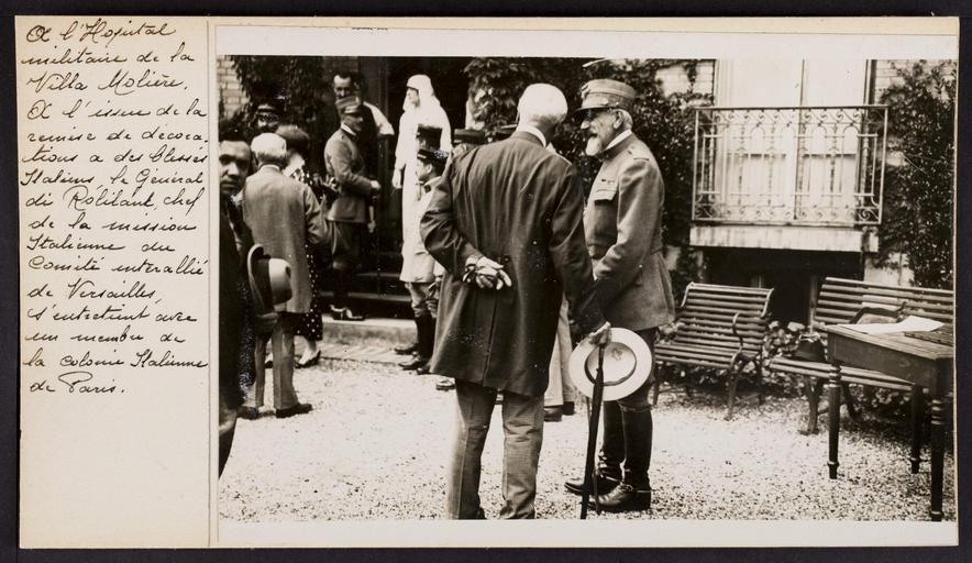 | Keywords: photo border A l'hôpital militaire de la villa Molière. Le général di Rolilant, chef de la mission italienne du comité interallié de Versailles. A l'hôpital militaire de la villa Molière. Le général di Rolilant, chef de la mission italienne du comité interallié de Versailles. |