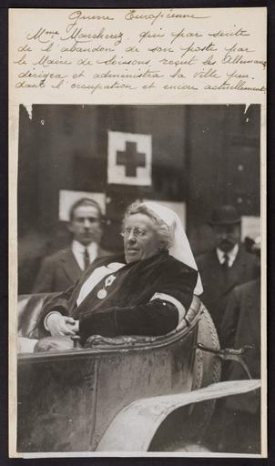 Keywords: people photo border Mme Marcherez, qui a administré la ville de Soissons sous l'occupation allemande, en l'absence du maire. Mme Marcherez, qui a administré la ville de Soissons sous l'occupation allemande, en l'absence du maire.