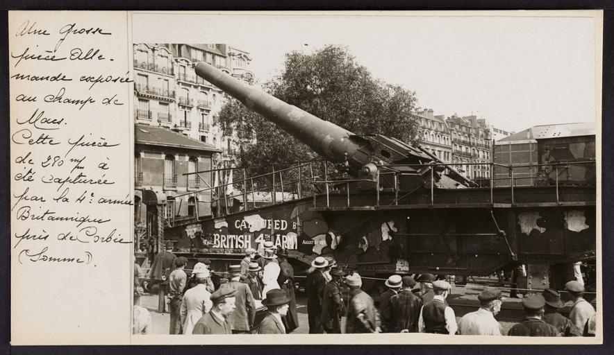 | Keywords: railroad gun railroadgun railway gun railwaygun artillery cannon photo border outdoor Un canon de 280 mm allemand a été capturé par la 4ème armée britannique près de Corbie. Un canon de 280 mm allemand a été capturé par la 4ème armée britannique près de Corbie. |