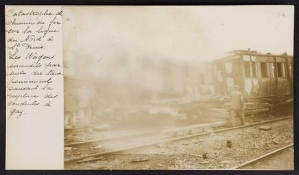 Keywords: photo border writing text Catastrophe de chemin de fer sur la ligne du Nord à St Denis. Les wagons incendiés par suite du tamponnement causant la rupture des conduites à gaz. Catastrophe de chemin de fer sur la ligne du Nord à St Denis. Les wagons incendiés par suite du tamponnement causant la rupture des conduites à gaz. |