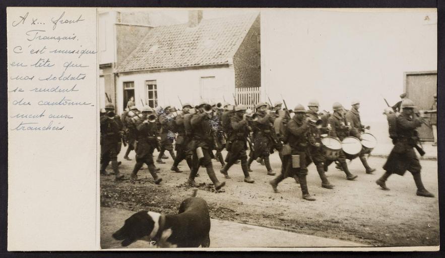 Keywords: bleu marching band marchingband band military band militaryband french army frencharmy the great war thegreatwar great war greatwar world war one worldwarone world war i worldwari wwi first world war firstworldwar armée de terre arméedeterre armee de terre armeedeterre photo border Front français. Du cantonnement aux tranchées, musique en tête. Front français. Du cantonnement aux tranchées, musique en tête.