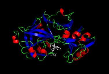 Keywords: 1PSO.png Pepsin in complex with pepstatin From PDB file 1PSO Created with PyMol 2006-10-07 own assumed DrKjaergaard Protease inhibitors Proteases