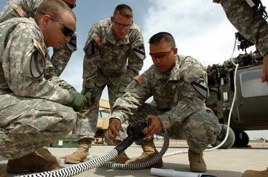 | Keywords: 1st Air Cavalry Brigade troops ready helo for haul DVIDS44549.jpg en New Orleans native Staff Sgt Quang Nguyen right noncommissioned officer in charge of quality control for Company D 3rd Battalion 227th Aviation Regiment 1st Air Cavalry Brigade 1st Cavalry Division gives a refresher course on how to join two ropes together on the Unit Maintenance Aerial Recovery Kit as Dayton Tenn native William King left a UH-60 Black Hawk crew chief for Company D Glendale Ariz native Brian Lenhart left of Nguyen also a Black Hawk crew chief for Co D and Philadelphia native Chief Warrant Officer Donald Chambers behind King the aviation maintenance technician for Co D listen and watch during an airlift dry run at Camp Taji Iraq It is routine for them to go over every detail well in advance of any airlift to make sure they are ready for the task when it happens said Nguyen 1999-11-30 Staff Sgt Nathan Hoskins https //www dvidshub net/image/44549 44549 2007-05-15 10 10 TAJI IQ PD-USGov UH-60 Black Hawk 1st Cavalry Division United States Camp Taji Images from DoD uploaded by Fæ |