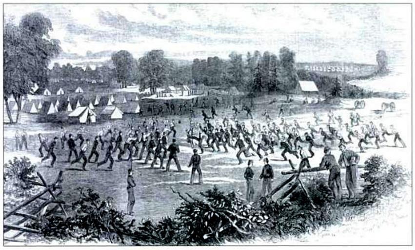 | Keywords: 1st Maryland Regiment.jpg en Camp Johnson near Winchester Virgina This engraving shows the First Maryland Regiment playing football before evening parade Published in Harper's Weekly on August 31 1861 The Marylanders wear uniforms received in May and June of 1861 The Confederate Army 1861-65 6 Missouri Kentucky Maryland By Ron Field Richard Hook Author ~ 1861 PD-old Author dead more than 70 years work in public domain Maryland Militia Uncategorized 2014 January 27 | ||||