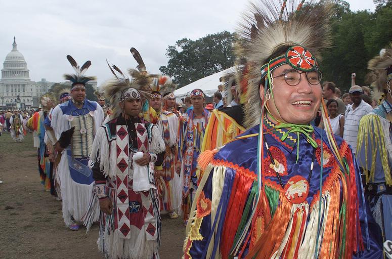 | Keywords: smithsonian institution smithsonianinstitution native american nativeamerican indian headdress traditional dress traditionaldress color photograph colorphotograph washington dc washingtondc capitol rally smile feathers native american powwow nativeamericanpowwow september 2002 september2002 celebration of ancient traditions celebrationofancienttraditions powwow on the national mall in washington d.c. powwowonthenationalmallinwashingtondc national museum of the american indian nationalmuseumoftheamericanindian traditional dance traditionaldance indians powwow procession daytime outdoors fun nordamerikaner indianerfest nordamerikanerindianerfest native american native americans nativeamericans washington nations outdoor Description: Powwows are large social gatherings of Native Americans who follow traditional dances started centuries ago by their ancestors, and which continually evolve to include contemporary aspects. These events of drum music,  dancing, singing, artistry and food, are attended by Natives and non-Natives, all of whom join in the dancing and take advantage of the opportunity to see old friends and teach the traditional ways to a younger generation.   During the National Powwow, the audience see dancers in full regalia compete in several dance categories, including Men and Women's Golden Age (ages 50 and older); Men's Fancy Dance, Grass and Traditional (Northern and Southern); Women's Jingle Dress, Fancy Shawl, and Traditional (Northern and Southern); Teens (13-17); Juniors (6-12) and Tiny Tots (ages 5 and younger). The drum groups are the heart of all powwows and provide the pulsating and thunderous beats that accompany a dancer's every movement. The powwow is led by three "host drums" that showcase three distinct styles of singing (Northern, Southern and contemporary) and represent the best examples of each style. The drum contest highlights groups of 10 to 12 members each, and they sing traditional family songs that are passed down orally from one generation to the next. The National Museum of the American Indian sponsored the National Powwow in 2002, 2005, and 2007 as a way of presenting to the public the diversity and social traditions of contemporary Native cultures.  Creator/Photographer: Katherine Fogden  Medium: Digital photograph  Culture: American Indian  Geography: USA  Date: 2002  Repository: National Museum of the American Indian  Accession number: 091502KF682 Description: Powwows are large social gatherings of Native Americans who follow traditional dances started centuries ago by their ancestors, and which continually evolve to include contemporary aspects. These events of drum music,  dancing, singing, artistry and food, are attended by Natives and non-Natives, all of whom join in the dancing and take advantage of the opportunity to see old friends and teach the traditional ways to a younger generation.   During the National Powwow, the audience see dancers in full regalia compete in several dance categories, including Men and Women's Golden Age (ages 50 and older); Men's Fancy Dance, Grass and Traditional (Northern and Southern); Women's Jingle Dress, Fancy Shawl, and Traditional (Northern and Southern); Teens (13-17); Juniors (6-12) and Tiny Tots (ages 5 and younger). The drum groups are the heart of all powwows and provide the pulsating and thunderous beats that accompany a dancer's every movement. The powwow is led by three "host drums" that showcase three distinct styles of singing (Northern, Southern and contemporary) and represent the best examples of each style. The drum contest highlights groups of 10 to 12 members each, and they sing traditional family songs that are passed down orally from one generation to the next. The National Museum of the American Indian sponsored the National Powwow in 2002, 2005, and 2007 as a way of presenting to the public the diversity and social traditions of contemporary Native cultures.  Creator/Photographer: Katherine Fogden  Medium: Digital photograph  Culture: American Indian  Geography: USA  Date: 2002  Repository: National Museum of the American Indian  Accession number: 091502KF682 |