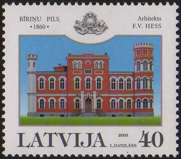 Keywords: 20030927 40sant Latvia Postage Stamp.jpg en Latvian postage stamp depicting the Bīriņi Castle noting the name of architect of reconstructions Friedrich Wilhelm Hess Scan of postage stamp from own collection Philaweb 2010-04-25 PD-LV-exempt stamps Stamps of Latvia 2003 Castles in Latvia on stamps Birini Bīriņi Palace |