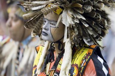 Keywords: smithsonian institution smithsonianinstitution 2005 american indian americanindian powwow woman feather head dress headdress beads face paint facepaint headre hoofdtooi veren indianen culture costume feathers make-up makeup powwows native dress national museum of the american indian nationalmuseumoftheamericanindian Description: Powwows are large social gatherings of Native Americans who follow traditional dances started centuries ago by their ancestors, and which continually evolve to include contemporary aspects. These events of drum music, dancing, singing, artistry and food, are attended by Natives and non-Natives, all of whom join in the dancing and take advantage of the opportunity to see old friends and teach the traditional ways to a younger generation. During the National Powwow, the audience see dancers in full regalia compete in several dance categories, including Men and Women's Golden Age (ages 50 and older); Men's Fancy Dance, Grass and Traditional (Northern and Southern); Women's Jingle Dress, Fancy Shawl, and Traditional (Northern and Southern); Teens (13-17); Juniors (6-12) and Tiny Tots (ages 5 and younger). The drum groups are the heart of all powwows and provide the pulsating and thunderous beats that accompany a dancer's every movement. The powwow is led by three "host drums" that showcase three distinct styles of singing (Northern, Southern and contemporary) and represent the best examples of each style. The drum contest highlights groups of 10 to 12 members each, and they sing traditional family songs that are passed down orally from one generation to the next. The National Museum of the American Indian sponsored the National Powwow in 2002, 2005, and 2007 as a way of presenting to the public the diversity and social traditions of contemporary Native cultures. Creator/Photographer: Walter Larrimore Medium: Digital photograph Culture: American Indian Geography: USA Date: 2005 Repository: National Museum of the American Indian Accession number: 081205WLPOWWOW0455 Description: Powwows are large social gatherings of Native Americans who follow traditional dances started centuries ago by their ancestors, and which continually evolve to include contemporary aspects. These events of drum music, dancing, singing, artistry and food, are attended by Natives and non-Natives, all of whom join in the dancing and take advantage of the opportunity to see old friends and teach the traditional ways to a younger generation. During the National Powwow, the audience see dancers in full regalia compete in several dance categories, including Men and Women's Golden Age (ages 50 and older); Men's Fancy Dance, Grass and Traditional (Northern and Southern); Women's Jingle Dress, Fancy Shawl, and Traditional (Northern and Southern); Teens (13-17); Juniors (6-12) and Tiny Tots (ages 5 and younger). The drum groups are the heart of all powwows and provide the pulsating and thunderous beats that accompany a dancer's every movement. The powwow is led by three "host drums" that showcase three distinct styles of singing (Northern, Southern and contemporary) and represent the best examples of each style. The drum contest highlights groups of 10 to 12 members each, and they sing traditional family songs that are passed down orally from one generation to the next. The National Museum of the American Indian sponsored the National Powwow in 2002, 2005, and 2007 as a way of presenting to the public the diversity and social traditions of contemporary Native cultures. Creator/Photographer: Walter Larrimore Medium: Digital photograph Culture: American Indian Geography: USA Date: 2005 Repository: National Museum of the American Indian Accession number: 081205WLPOWWOW0455 |