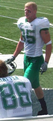 | Keywords: 20090926 Ehscodyslatec.jpg en Cody Slate Marshall tight end at the sidelines of Liberty Bowl Memorial Stadium Memphis Tennessee on 9/26/09 own Phillip Stephenson photographer Philliproy Phillip Stephenson photographer 2009-09-26 Marshall Thundering Herd football players |