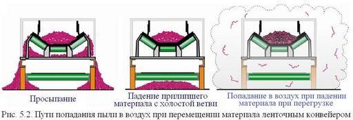 View Original:Обеспыливание_2012_Рис._5.2._Пути_попадания_пыли_в_воздух_при_перемещении_материала_конвейером.JPG (1122x383)