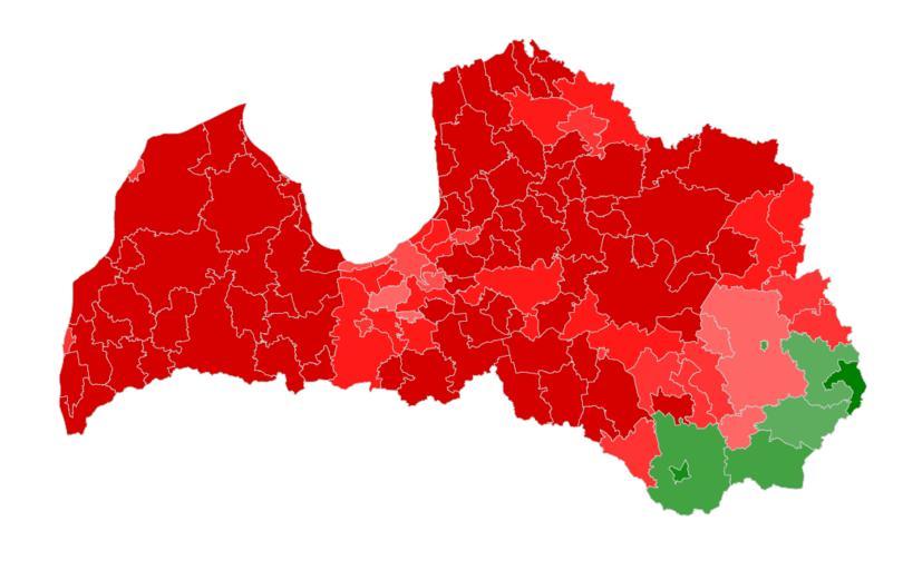 | Keywords: 2012 Latvian referendum.svg en The author has published the file giving it to public domain see source The file reflects the results of the referendum in Latvia 2012 February 18 concerning constitutional amendments proposing to elevate the status of Russian language Colours reflect percentage of participants data are classified by municipalities of Latvia IN FAVOUR legend 008000 100 0 90 0 148E14 89 9 80 0 2B992B 79 9 70 0 43A343 69 9 60 0 5EAD5E 59 9 50 0 AGAINST FF6666 50 0 59 9 FF4D4D 60 0 69 9 FF3333 70 0 79 9 FF1A1A 80 0 89 9 FF0000 90 0 100 0 uk Результати ефе ендуму в Латвії 18 лютого 2012 оку щодо надання осійській мові статусу д угої офіційної ЗА legend 008000 100 0 90 0 148E14 89 9 80 0 2B992B 79 9 70 0 43A343 69 9 60 0 5EAD5E 59 9 50 0 ПРОТИ FF6666 50 0 59 9 FF4D4D 60 0 69 9 FF3333 70 0 79 9 FF1A1A 80 0 89 9 FF0000 90 0 100 0 2012-02-23 http //lv wikipedia org/wiki/Att C4 93ls Referendums_2012_rezult C4 81ts_karte svg Digital1 a user of lv wikipedia org lv Latvian Wikipedia Digital1 Referendums in Latvia Linguistic rights 2012 in politics Constitutional law |