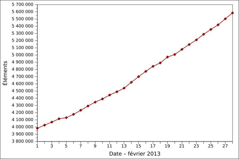 | Keywords: 2013-02 Wikidata items FR.svg de Grafische Darstellung des vollständigen Anzahls der angelegten Gegenstände auf Wikidata in Februar 2013 auf Französisch Löschungen werden nicht berücksichtigt en Graph presenting the total number of items created on Wikidata as of February 2013 in French Item deletions are not taken into account fr Graphique en français représentant le nombre total d'éléments créés sur Wikidata en février 2013 Les suppressions d'éléments ne sont pas prises en compte 2013-03-01 16 07 own Ljubinka cc-zero File 2013-02 Wikidata items DE svg File 2013-02 Wikidata items EN svg Wikidata statistics in February 2013 Wikidata statistics in French |