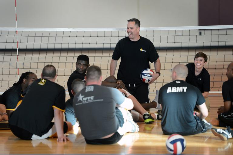 Keywords: 2013 Warrior Games 130503-D-FW736-010.jpg en The U S Army sitting volleyball team prepares to practice for the 2013 Warrior Games in Colorado Springs Colo May 3 2013 The Warrior Games is an annual event allowing wounded ill and injured service members and veterans to compete in Paralympic sports including archery cycling shooting sitting volleyball track and field swimming and wheelchair basketball DOD photo by Marvin Lynchard/Released <br>Unit Defense Imagery Management Operations Center 2013-05-03 Marv Lynchard https //www dvidshub net/image/935003/2013-warrior-games 130503-D-FW736-010 2013-05-18 14 49 COLORADO SPRINGS CO US PD-USGov Warrior Games Images from DoD uploaded by Fæ |
